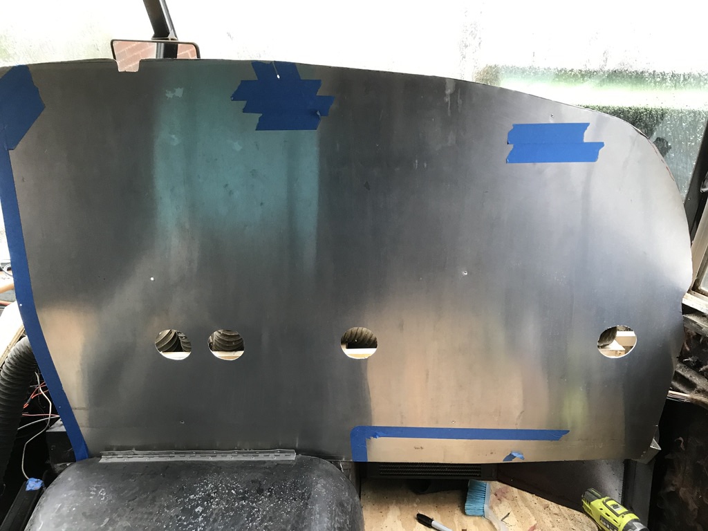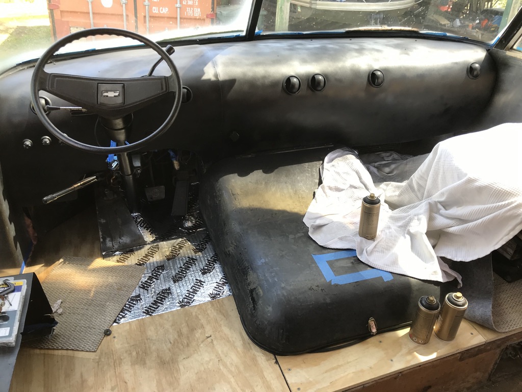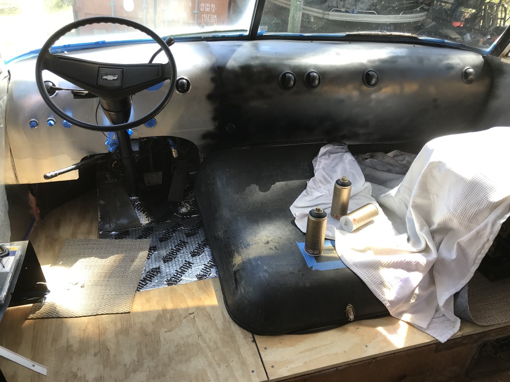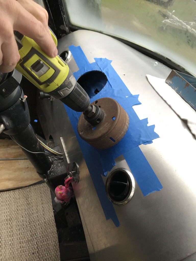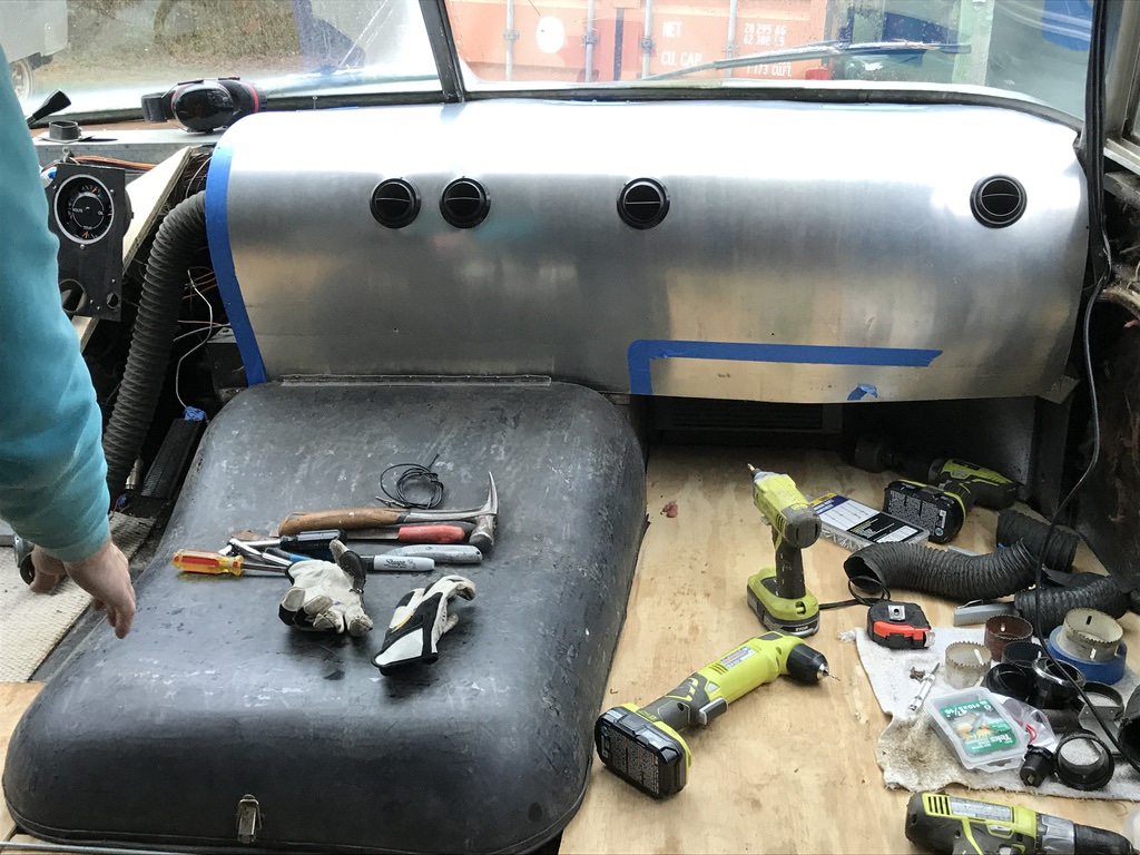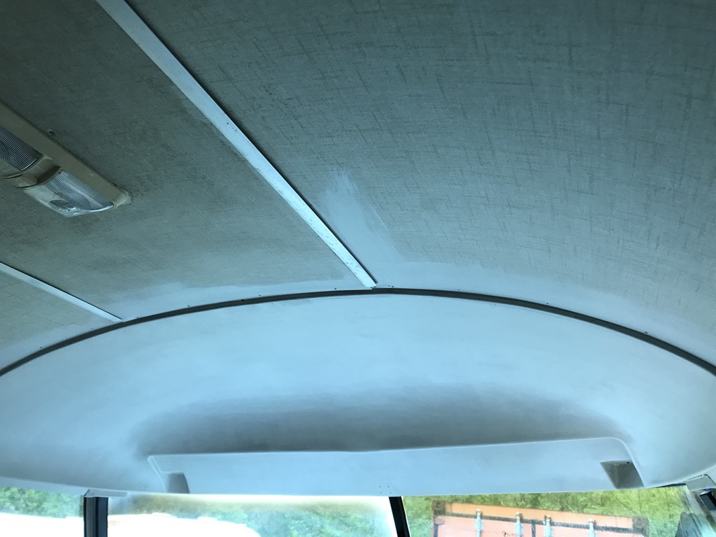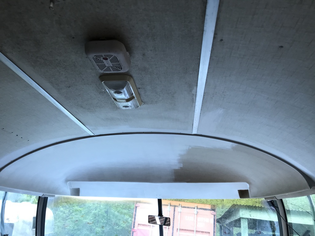 For my birthday this year, I asked Andrew for a new cockpit in Dreamy Boat. The old plastic dashboard is full of mud dauber nests and is brittle and crumbling. They are impossible to find. Replacing it is going to need to be custom. I would like to avoid the wood look or the lovingly DIY look. Unfortunately, I am not sure what kind of finish we can produce. With this in mind, I started by priming the ceiling with Kilz oil based primer. Happy birthday to me!