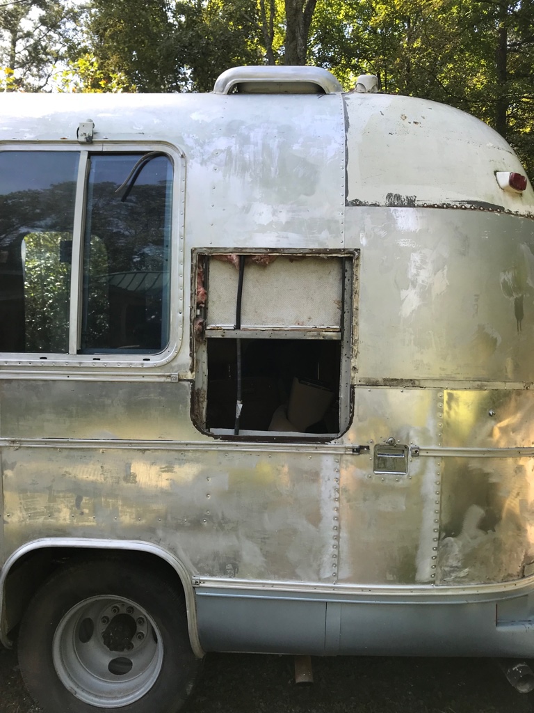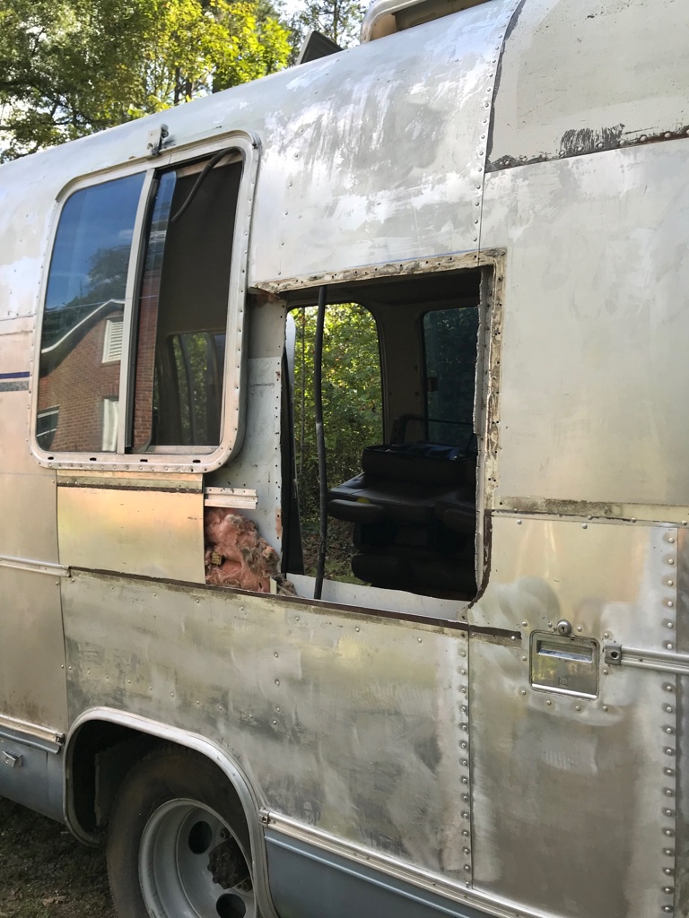 The refrigerator vent was chopped into the coach almost as an after thought. Andrew and I decided to patch it over and do the best we and do the best we can with what we have.