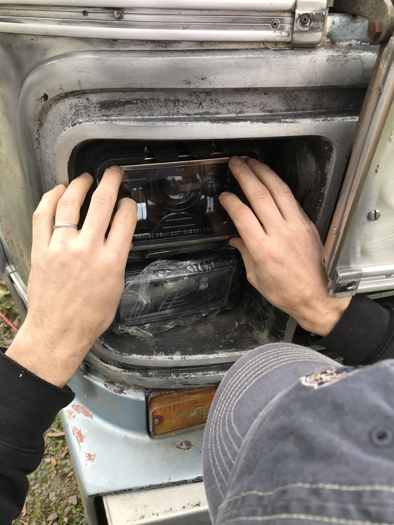 For my birthday this year, my brother gifted me new headlights for Dream Boat. He totally dotes on me and is my biggest cheerleader for my Airstream hobby. It was a relatively quick and easy installation. It took a day.