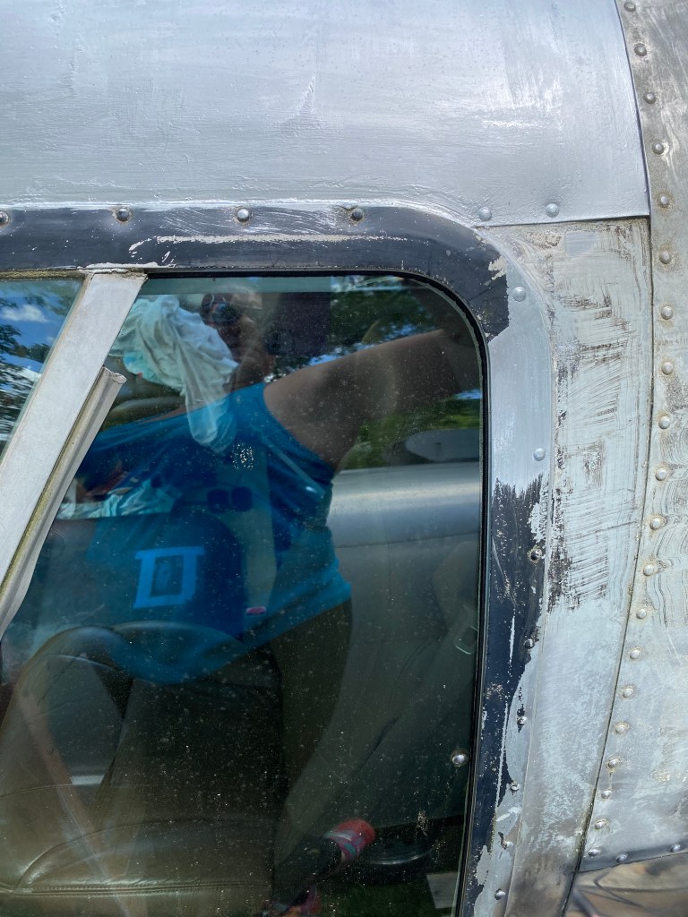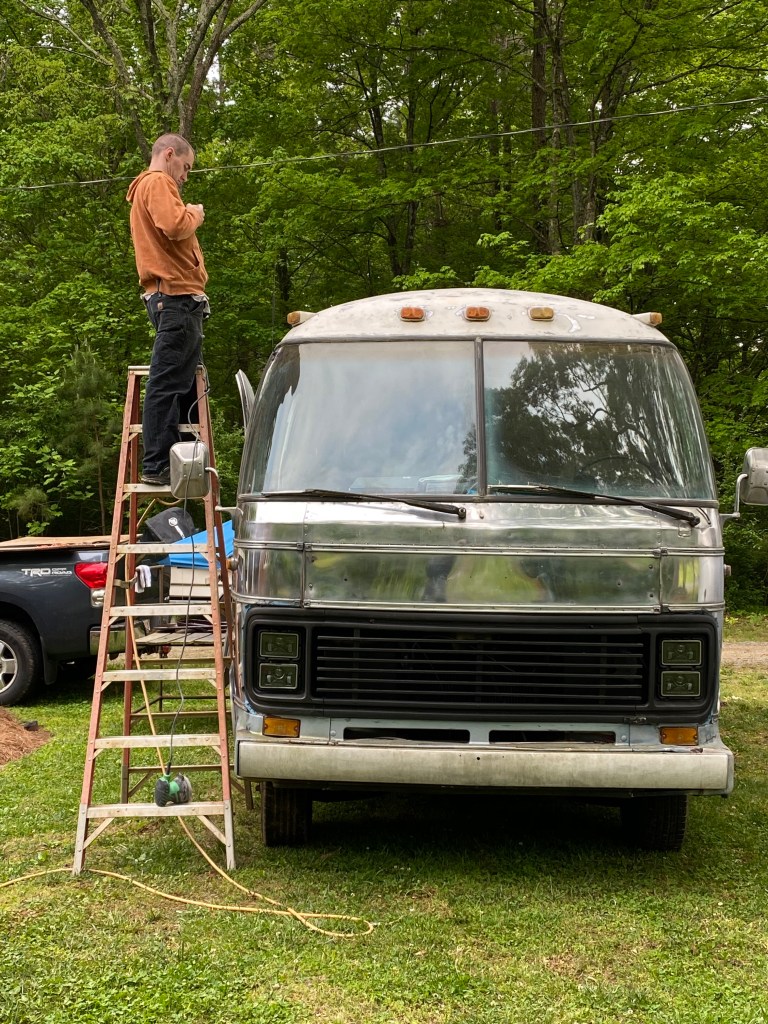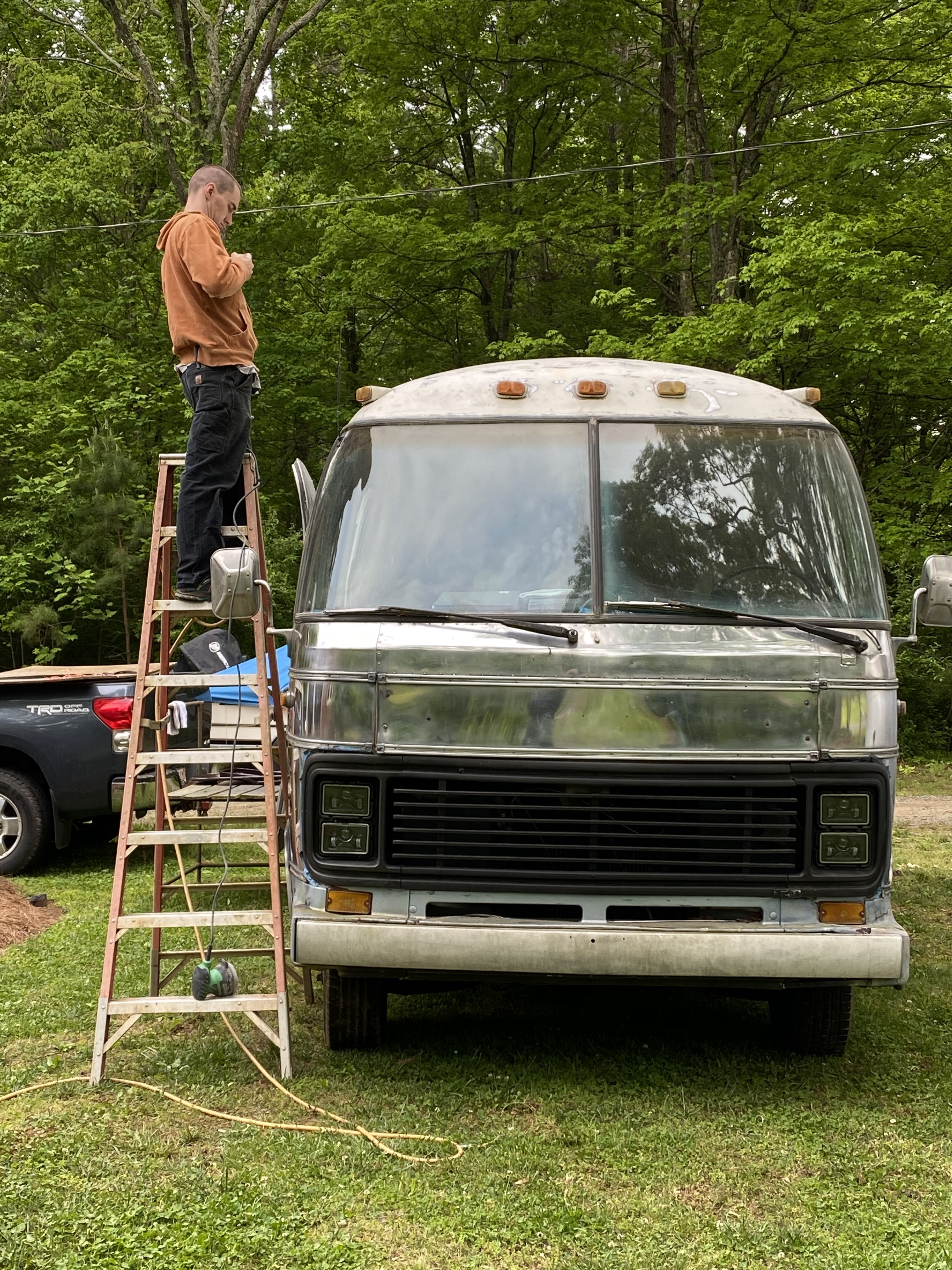 We decided to paint the steel endcaps since we were polishing Dreamy and had all the ladders and scaffolding out. The weather has been wonderful. They will need more coats of paint but this is a good start.