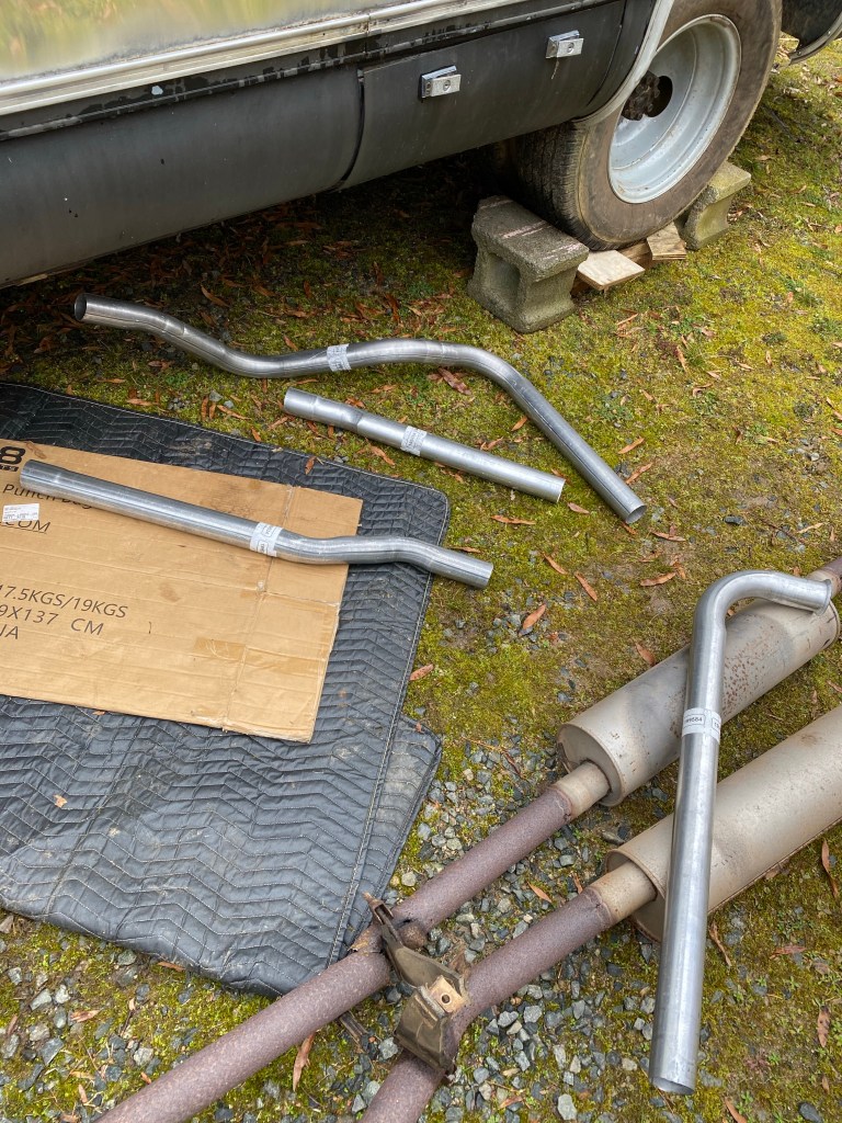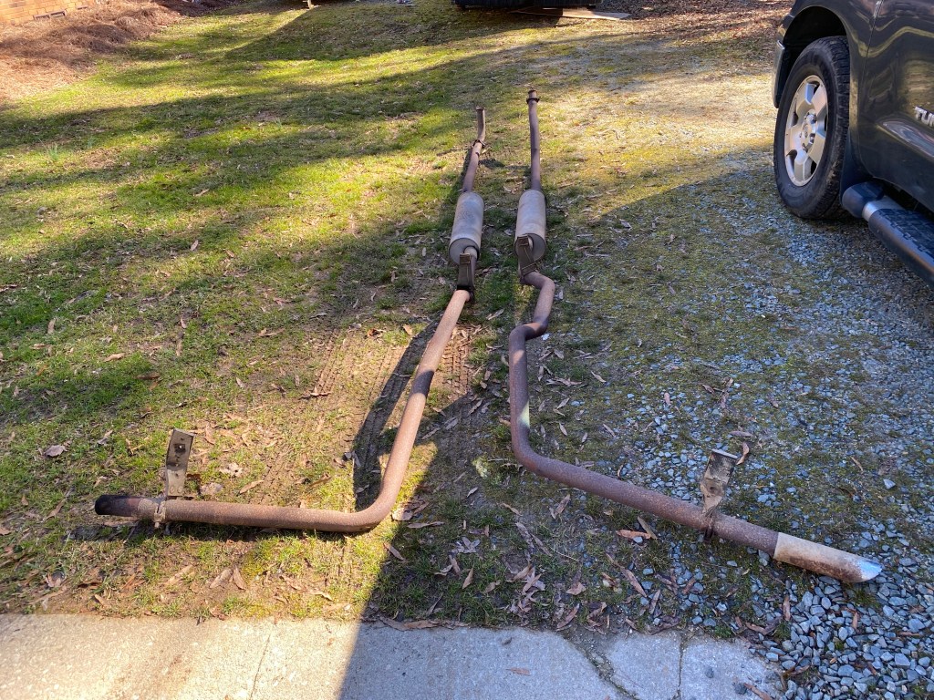 Dream Boat has an exhaust that is full of pin holes and rust. It needs to be replaced. I drove all over with our old exhaust looking for muffler shops or mom and pop places that could weld me a new setup. Only one place was willing or able to do it and they required that we bring Dreamy over to be worked on. His exhaust was already removed and hasn’t been able to successfully drive to the gas station 2 miles away. Andrew called Summit Racing and they walked us through and emailed us a link to a shopping cart. It was incredibly easy and we will save a little money by doing this ourselves.